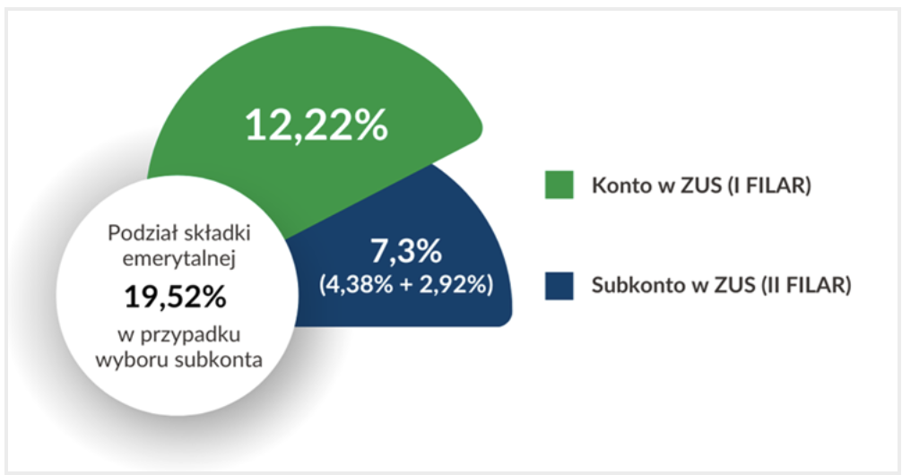 “Osoba ubezpieczona w ZUS, której składka emerytalna w wysokości 19,52 proc. jest dzielona na I i II filar, może zdecydować, czy część jej składki w wysokości 2,92 proc. podstawy wymiaru (wynagrodzenia) ma być: