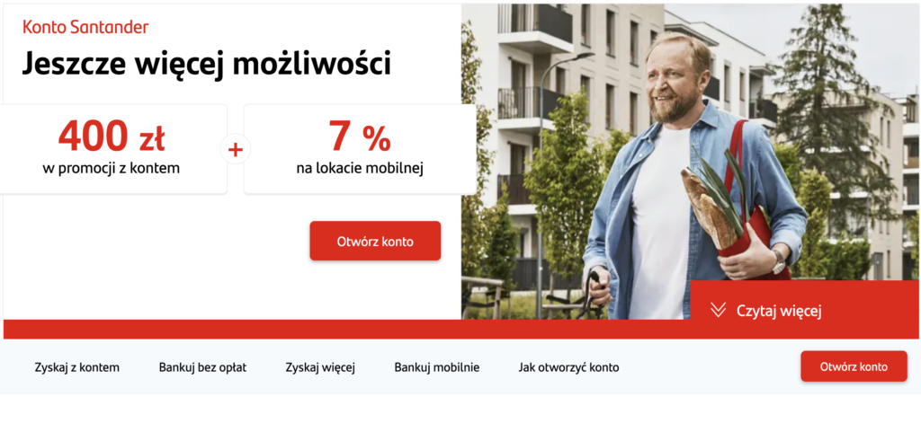 Promocja Konta Santander: Zdobądź 400 zł i 7% na Lokacie Mobilnej